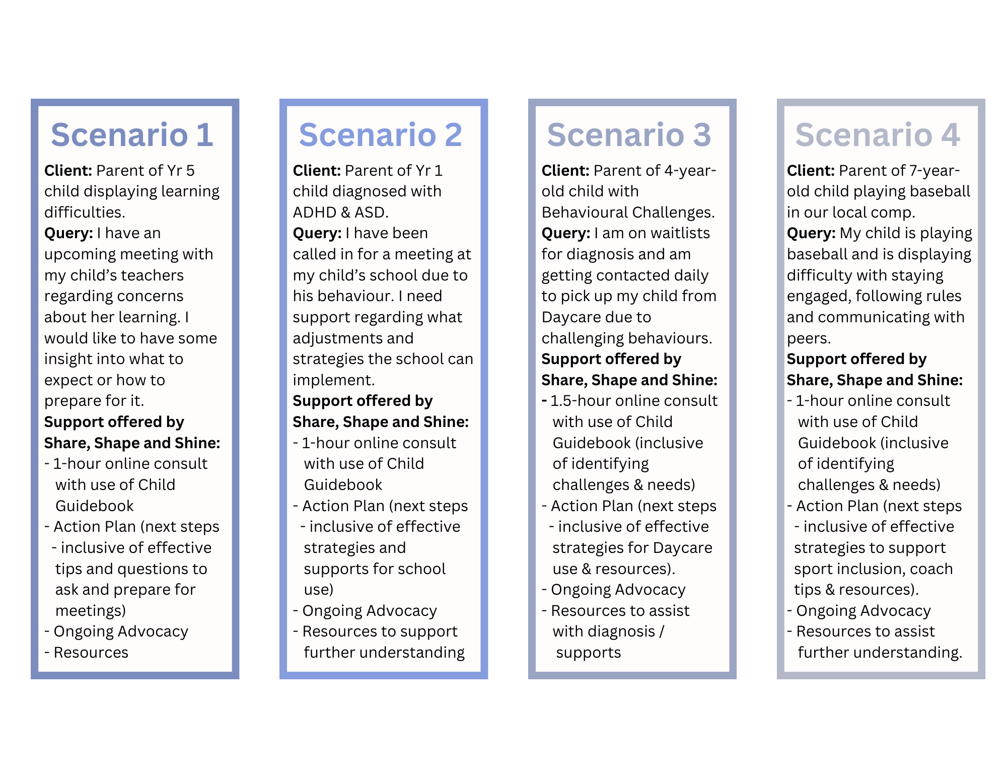 Share, Shape and Shine offers Live and Online Workshops focusing on how to help advocate for your child in their educational journey by unpacking the ‘need to know’ information on all areas of inclusive education including unpacking Support Plans, innovative evidence-based adjustments, pathways for support, and strategies for study and homework.
